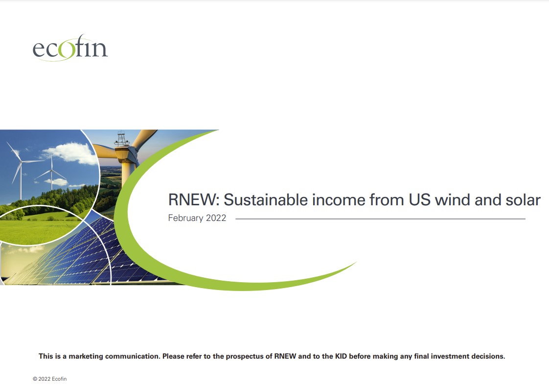 Due to legal restrictions, the contents of the following web pages may not be accessed by persons who are located in the United States, Canada, Australia, New Zealand, Japan, the Republic of South Africa or residents in any EU Member State (other than any EU Member State where Ecofin U.S. Renewables Infrastructure Trust PLC’s (the “Company’s”) shares are legally marketed) or in any other country where an offer of the securities to the public is not taking place.